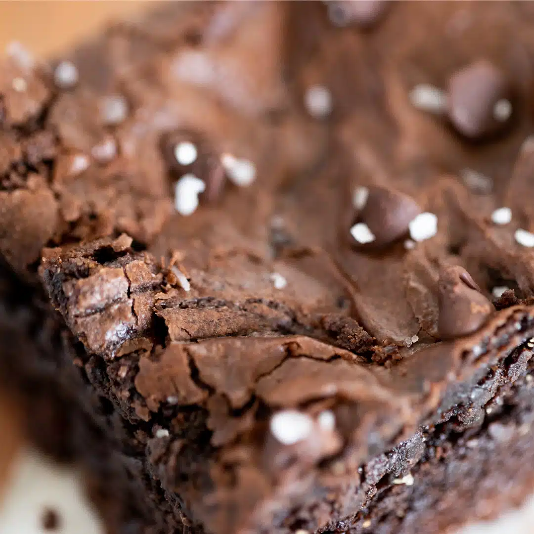 This thing is chocolate heaven. It’s soft and chewy – full of chocolate chips and brownie goodness. Every bite is packed with dense chocolate. It’s been single handedly turning people gluten free. Oh and did we mention, it’s not just Gluten Free? It’s Dairy Free too!